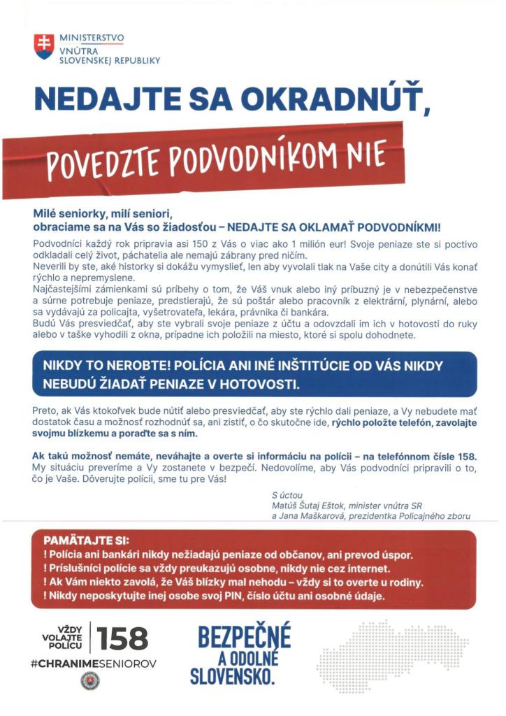 Upozornenie: Nenechajte sa okradnúť, povedzte podvodníkom NIE!